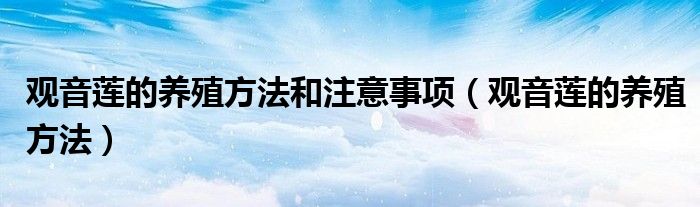 关于观音莲的养殖方法和注意事项,观音莲的养殖方法这个很多人还不知道,今天菲菲来为大家解答以上的问题,现在让我们一起来看看吧!