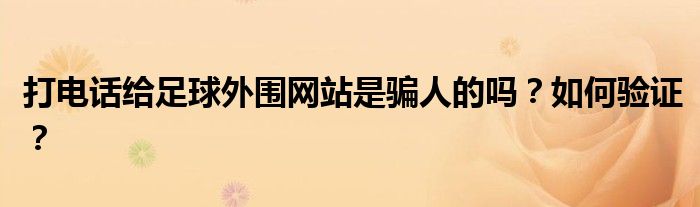 关于打电话给足球外围网站是骗人的吗?如何验证?这个很多人还不知道,今天菲菲来为大家解答以上的问题,现在让我们一起来看看吧!