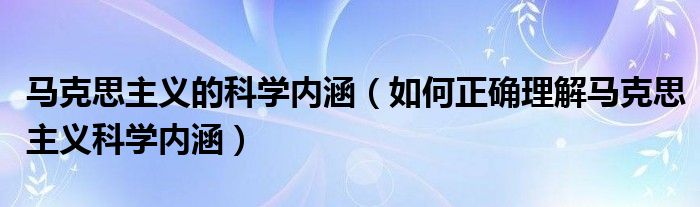 关于马克思主义的科学内涵,如何正确理解马克思主义科学内涵这个很多人还不知道,今天菲菲来为大家解答以上的问题,现在让我们一起来看看吧!