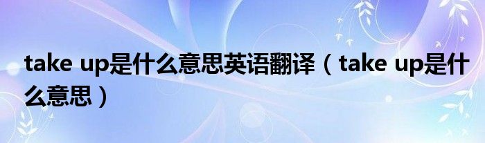 关于take up是什么意思英语翻译,take up是什么意思这个很多人还不知道,今天菲菲来为大家解答以上的问题,现在让我们一起来看看吧!