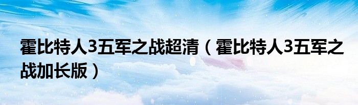 关于霍比特人3五军之战超清,霍比特人3五军之战加长版这个很多人还不知道,今天菲菲来为大家解答以上的问题,现在让我们一起来看看吧!