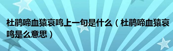 关于杜鹃啼血猿哀鸣上一句是什么,杜鹃啼血猿哀鸣是么意思这个很多人还不知道,今天菲菲来为大家解答以上的问题,现在让我们一起来看看吧!