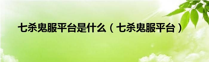 关于七杀鬼服平台是什么,七杀鬼服平台这个很多人还不知道,今天菲菲来为大家解答以上的问题,现在让我们一起来看看吧!