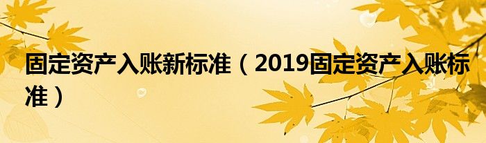 关于固定资产入账新标准,2019固定资产入账标准这个很多人还不知道,今天菲菲来为大家解答以上的问题,现在让我们一起来看看吧!