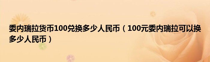 关于委内瑞拉货币100兑换多少人民币,100元委内瑞拉可以换多少人民币这个很多人还不知道,今天菲菲来为大家解答以上的问题,现在让我们一起来看看吧!