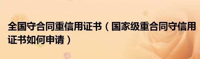 关于全国守合同重信用证书,国家级重合同守信用证书如何申请这个很多人还不知道,今天菲菲来为大家解答以上的问题,现在让我们一起来看看吧!