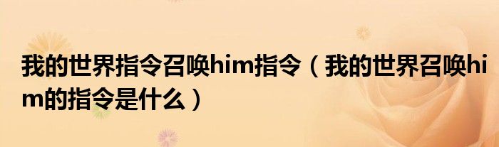 关于我的世界指令召唤him指令,我的世界召唤him的指令是什么这个很多人还不知道,今天菲菲来为大家解答以上的问题,现在让我们一起来看看吧!