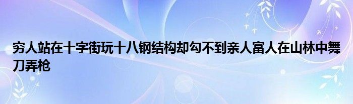 关于穷人站在十字街玩十八钢结构却勾不到亲人富人在山林中舞刀弄枪这个很多人还不知道,今天菲菲来为大家解答以上的问题,现在让我们一起来看看吧!