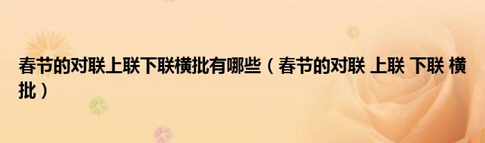 关于春节的对联上联下联横批有哪些,春节的对联 上联 下联 横批这个很多人还不知道,今天菲菲来为大家解答以上的问题,现在让我们一起来看看吧!