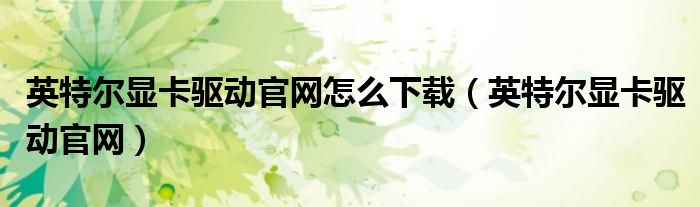 英特尔显卡驱动官网怎么下载(英特尔显卡驱动官网)