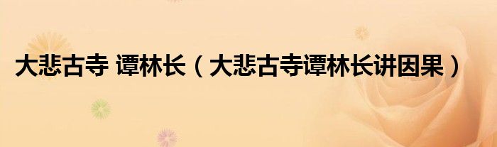 大悲古寺 谭林长(大悲古寺谭林长讲因果)