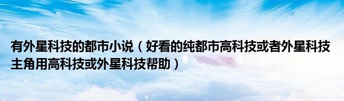 关于有外星科技的都市小说,好看的纯都市高科技或者外星科技 主角用高科技或外星科技帮助这个很多人还不知道,今天菲菲来为大家解答以上的问题,现在让我们一起来看看吧!