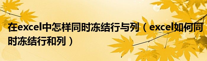 关于在excel中怎样同时冻结行与列,excel如何同时冻结行和列这个很多人还不知道,今天菲菲来为大家解答以上的问题,现在让我们一起来看看吧!