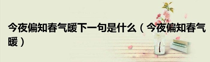 关于今夜偏知春气暖下一句是什么,今夜偏知春气暖这个很多人还不知道,今天菲菲来为大家解答以上的问题,现在让我们一起来看看吧!