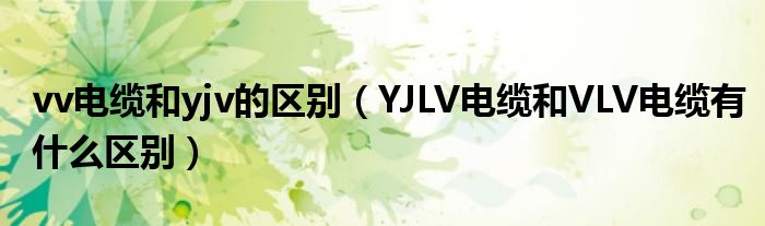 关于vv电缆和yjv的区别,YJLV电缆和VLV电缆有什么区别这个很多人还不知道,今天菲菲来为大家解答以上的问题,现在让我们一起来看看吧!