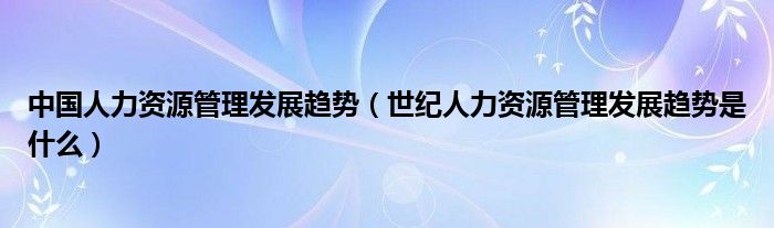 关于中国人力资源管理发展趋势,世纪人力资源管理发展趋势是什么这个很多人还不知道,今天菲菲来为大家解答以上的问题,现在让我们一起来看看吧!