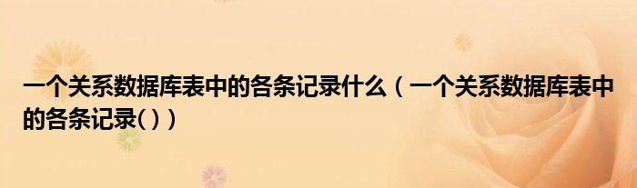 关于一个关系数据库表中的各条记录什么,一个关系数据库表中的各条记录( )这个很多人还不知道,今天菲菲来为大家解答以上的问题,现在让我们一起来看看吧!