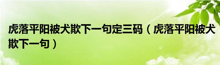 关于虎落平阳被犬欺下一句定三码,虎落平阳被犬欺下一句这个很多人还不知道,今天菲菲来为大家解答以上的问题,现在让我们一起来看看吧!