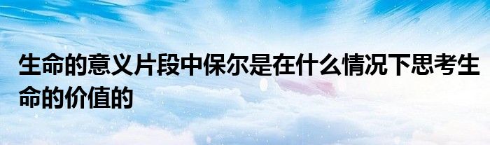 关于生命的意义片段中保尔是在什么情况下思考生命的价值的这个很多人还不知道,今天菲菲来为大家解答以上的问题,现在让我们一起来看看吧!