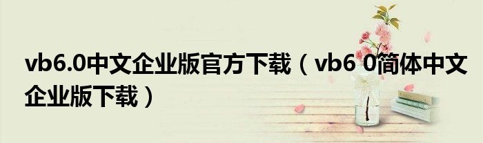 关于vb6.0中文企业版官方下载,vb6 0简体中文企业版下载这个很多人还不知道,今天菲菲来为大家解答以上的问题,现在让我们一起来看看吧!