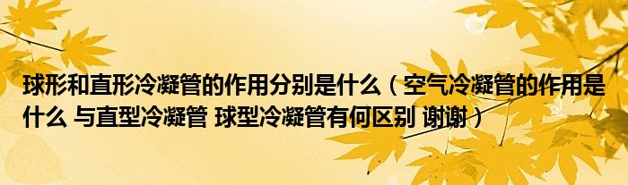 关于球形和直形冷凝管的作用分别是什么,空气冷凝管的作用是什么 与直型冷凝管 球型冷凝管有何区别 谢谢这个很多人还不知道,今天菲菲来为大家解答以上的问题,现在让我们一起来看看吧!