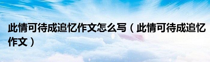 此情可待成追忆作文怎么写(此情可待成追忆作文)