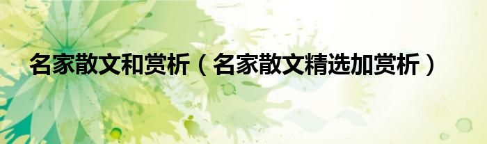 关于名家散文和赏析,名家散文精选加赏析这个很多人还不知道,今天菲菲来为大家解答以上的问题,现在让我们一起来看看吧!