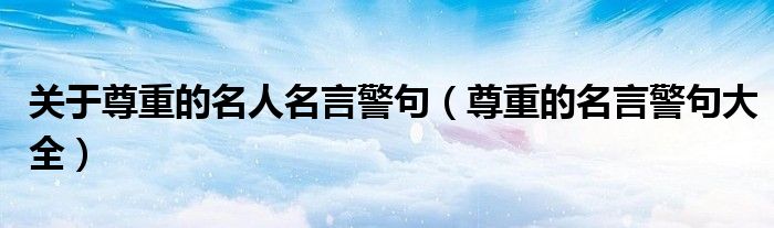 关于关于尊重的名人名言警句,尊重的名言警句大全这个很多人还不知道,今天菲菲来为大家解答以上的问题,现在让我们一起来看看吧!