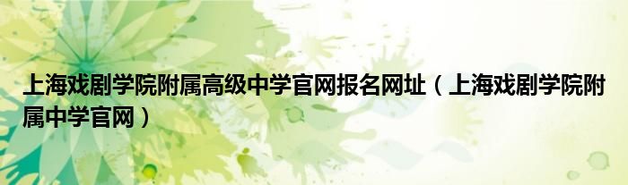 关于上海戏剧学院附属高级中学官网报名网址,上海戏剧学院附属中学官网这个很多人还不知道,今天菲菲来为大家解答以上的问题,现在让我们一起来看看吧!