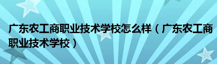 关于广东农工商职业技术学校怎么样,广东农工商职业技术学校这个很多人还不知道,今天菲菲来为大家解答以上的问题,现在让我们一起来看看吧!