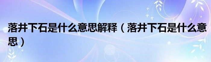 关于落井下石是什么意思解释,落井下石是什么意思这个很多人还不知道,今天菲菲来为大家解答以上的问题,现在让我们一起来看看吧!
