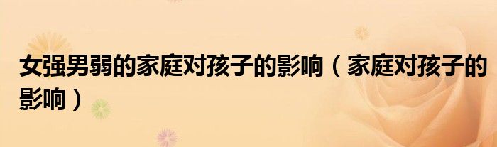关于女强男弱的家庭对孩子的影响,家庭对孩子的影响这个很多人还不知道,今天菲菲来为大家解答以上的问题,现在让我们一起来看看吧!