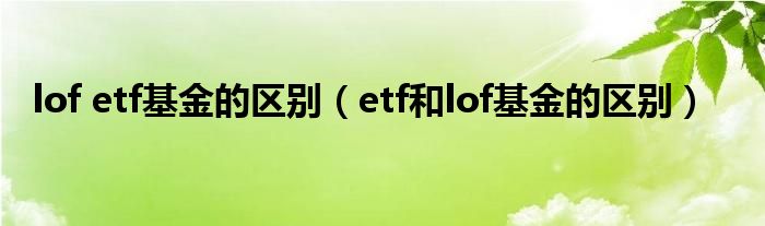 关于lof etf基金的区别,etf和lof基金的区别这个很多人还不知道,今天菲菲来为大家解答以上的问题,现在让我们一起来看看吧!