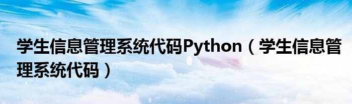 关于学生信息管理系统代码Python,学生信息管理系统代码这个很多人还不知道,今天菲菲来为大家解答以上的问题,现在让我们一起来看看吧!