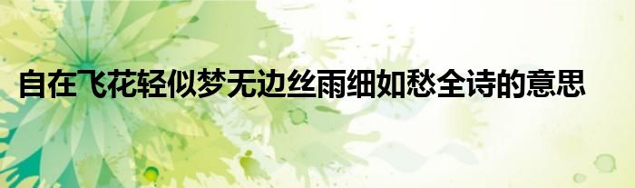 关于自在飞花轻似梦无边丝雨细如愁全诗的意思这个很多人还不知道,今天菲菲来为大家解答以上的问题,现在让我们一起来看看吧!