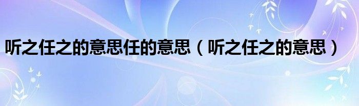 关于听之任之的意思任的意思,听之任之的意思这个很多人还不知道,今天菲菲来为大家解答以上的问题,现在让我们一起来看看吧!