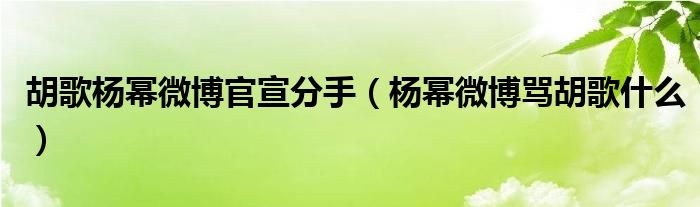 关于胡歌杨幂微博官宣分手,杨幂微博骂胡歌什么这个很多人还不知道,今天菲菲来为大家解答以上的问题,现在让我们一起来看看吧!