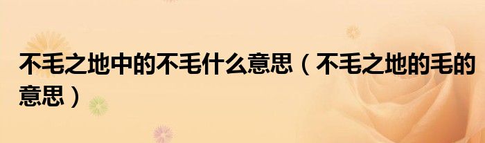 关于不毛之地中的不毛什么意思,不毛之地的毛的意思这个很多人还不知道,今天菲菲来为大家解答以上的问题,现在让我们一起来看看吧!