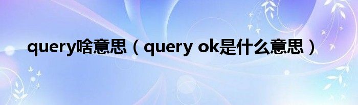 关于query啥意思,query ok是什么意思这个很多人还不知道,今天菲菲来为大家解答以上的问题,现在让我们一起来看看吧!