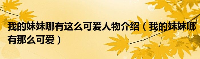 关于我的妹妹哪有这么可爱人物介绍,我的妹妹哪有那么可爱这个很多人还不知道,今天菲菲来为大家解答以上的问题,现在让我们一起来看看吧!