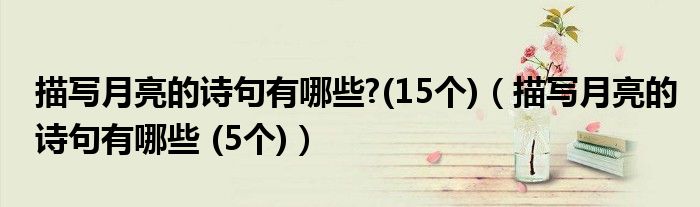 关于描写月亮的诗句有哪些?(15个),描写月亮的诗句有哪些 (5个)这个很多人还不知道,今天菲菲来为大家解答以上的问题,现在让我们一起来看看吧!