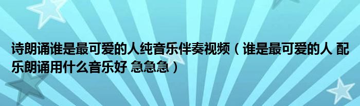 关于诗朗诵谁是最可爱的人纯音乐伴奏视频,谁是最可爱的人 配乐朗诵用什么音乐好 急急急这个很多人还不知道,今天菲菲来为大家解答以上的问题,现在让我们一起来看看吧!
