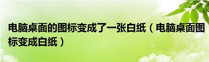 关于电脑桌面的图标变成了一张白纸,电脑桌面图标变成白纸这个很多人还不知道,今天菲菲来为大家解答以上的问题,现在让我们一起来看看吧!