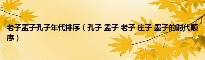关于老子孟子孔子年代排序,孔子 孟子 老子 庄子 墨子的时代顺序这个很多人还不知道,今天菲菲来为大家解答以上的问题,现在让我们一起来看看吧!