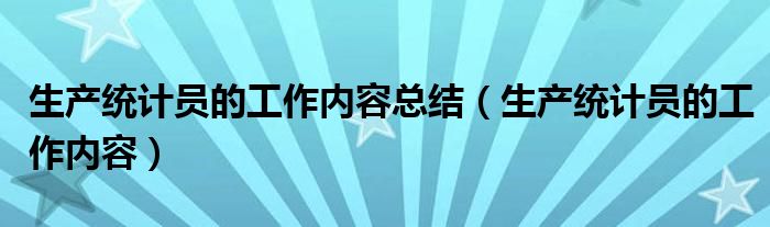 关于生产统计员的工作内容总结,生产统计员的工作内容这个很多人还不知道,今天菲菲来为大家解答以上的问题,现在让我们一起来看看吧!