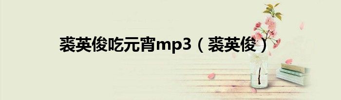 关于裘英俊吃元宵mp3,裘英俊这个很多人还不知道,今天菲菲来为大家解答以上的问题,现在让我们一起来看看吧!