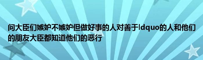 关于问大臣们嫉妒不嫉妒但做好事的人对善于ldquo的人和他们的朋友大臣都知道他们的恶行这个很多人还不知道,今天菲菲来为大家解答以上的问题,现在让我们一起来看看吧!