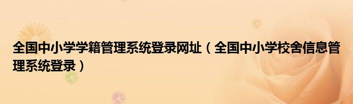 关于全国中小学学籍管理系统登录网址,全国中小学校舍信息管理系统登录这个很多人还不知道,今天菲菲来为大家解答以上的问题,现在让我们一起来看看吧!