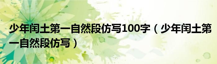 关于少年闰土第一自然段仿写100字,少年闰土第一自然段仿写这个很多人还不知道,今天菲菲来为大家解答以上的问题,现在让我们一起来看看吧!