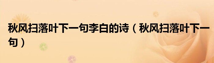 关于秋风扫落叶下一句李白的诗,秋风扫落叶下一句这个很多人还不知道,今天菲菲来为大家解答以上的问题,现在让我们一起来看看吧!